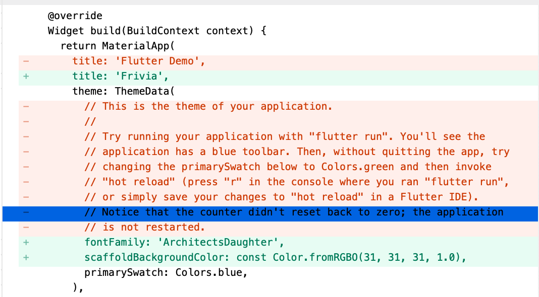 Your application code is in friviaa/lib/main.dart.