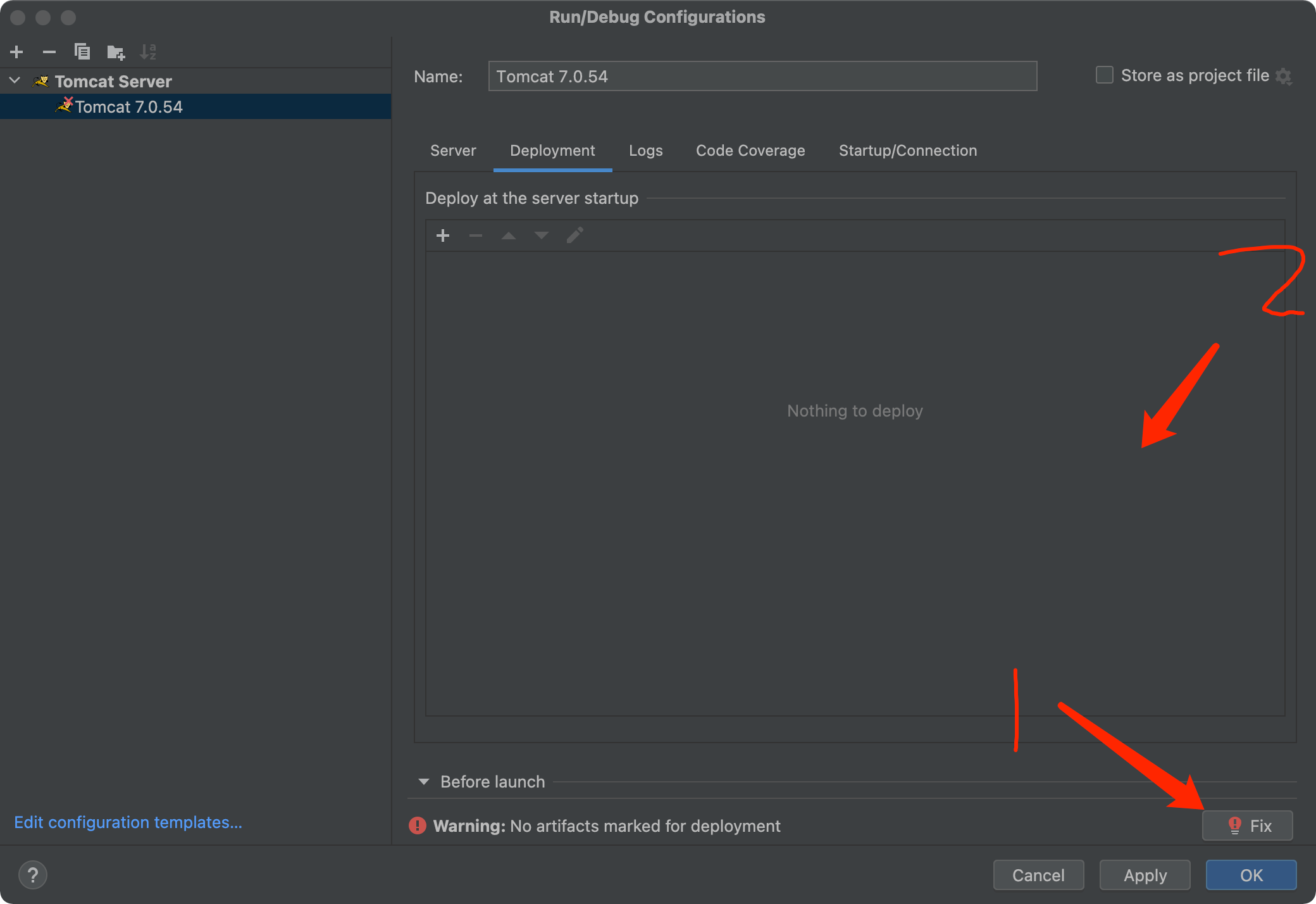点击fix,点击xxx war,点击apply,点击OK,点击运行。