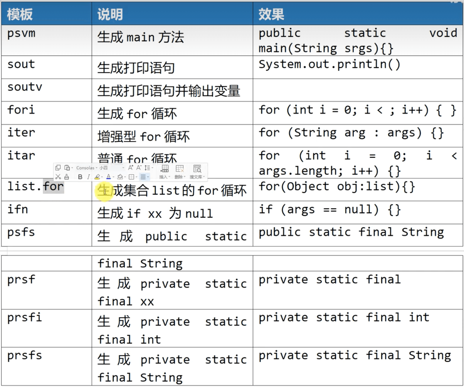 在IDEA中,有很多内置的编码模板,使用者只需要敲击简单的前缀即可生成代码。但是以下模板是固定的无法修改。