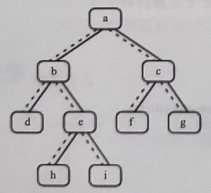 在图2.8中的二叉树的中序遍历序列是{d,b,h,e,i,a,f,c,g}。我们将以这棵树为例来分析如何找出二叉树的下一个节点。