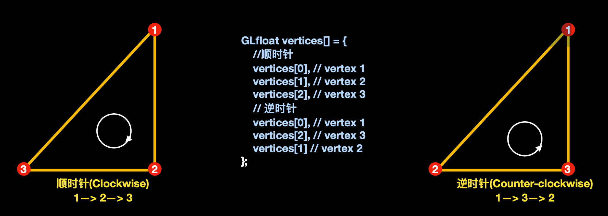 - 左侧三⻆形顶点顺序为: 1—> 2—> 3; 右侧三⻆形的顶点顺序为: 1—> 2—> 3 .