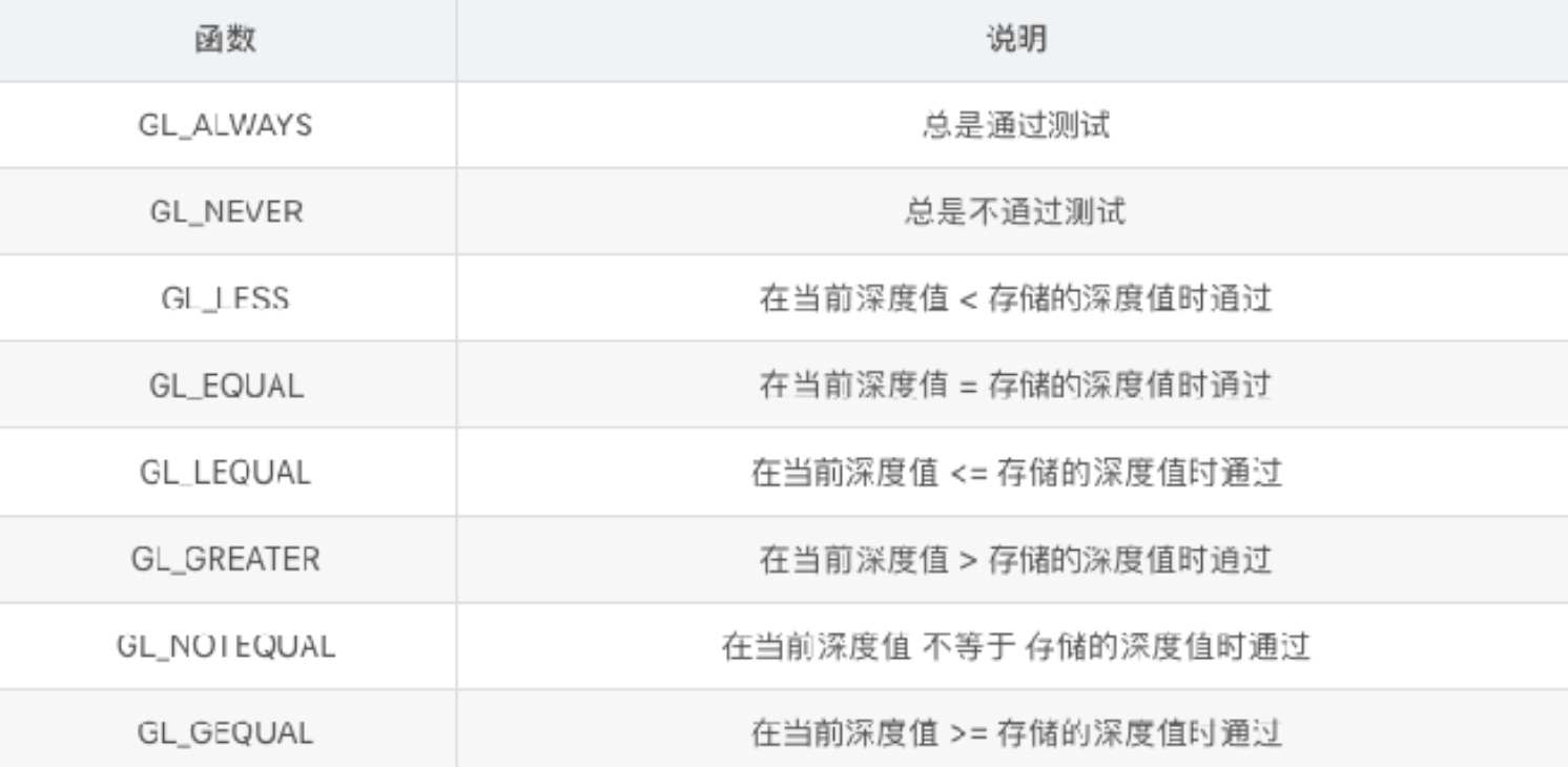 //value : GL_TURE 开启深度缓冲区写⼊入; GL_FALSE 关闭深度缓冲区写⼊入 void glDepthMask(GLBool value);