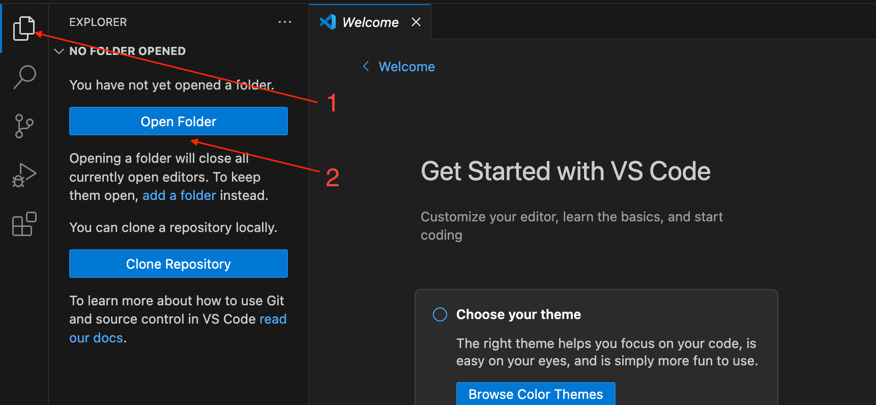 2、 打开VSCode,设置文件夹目录为步骤一新建的路径。