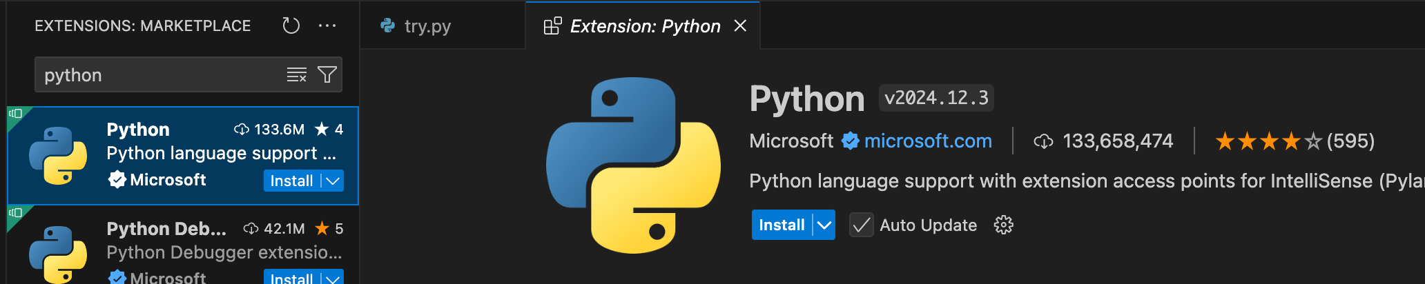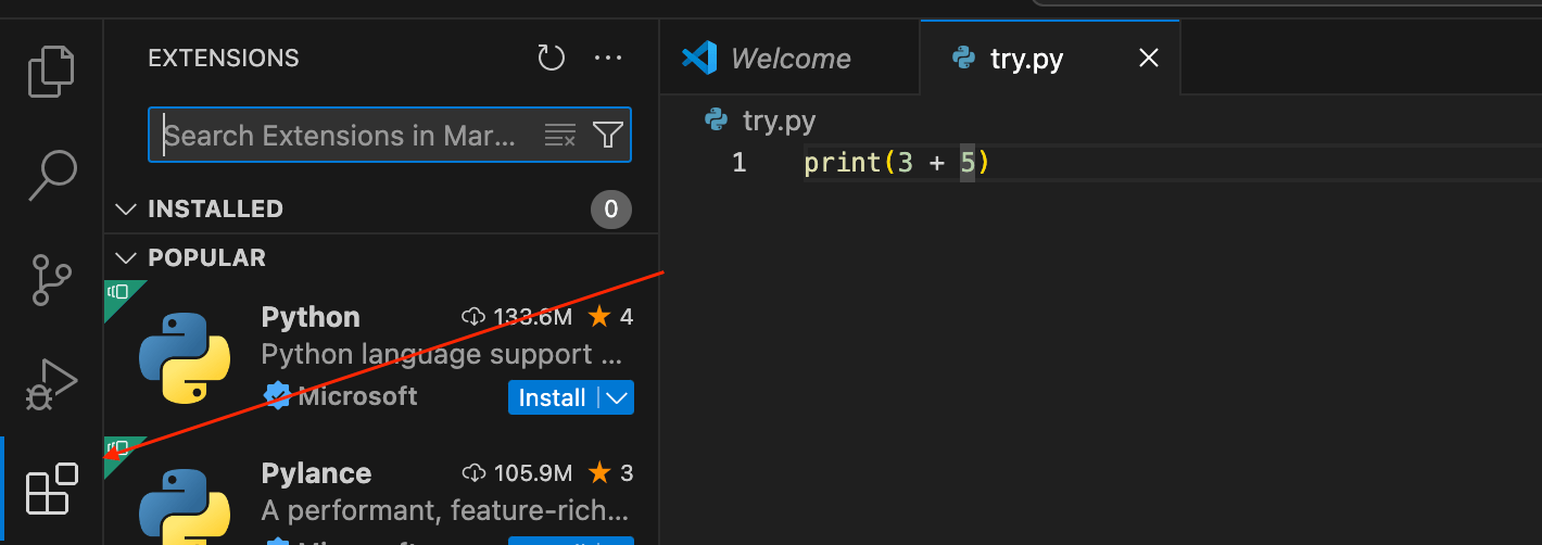 搜索python,安装python插件。