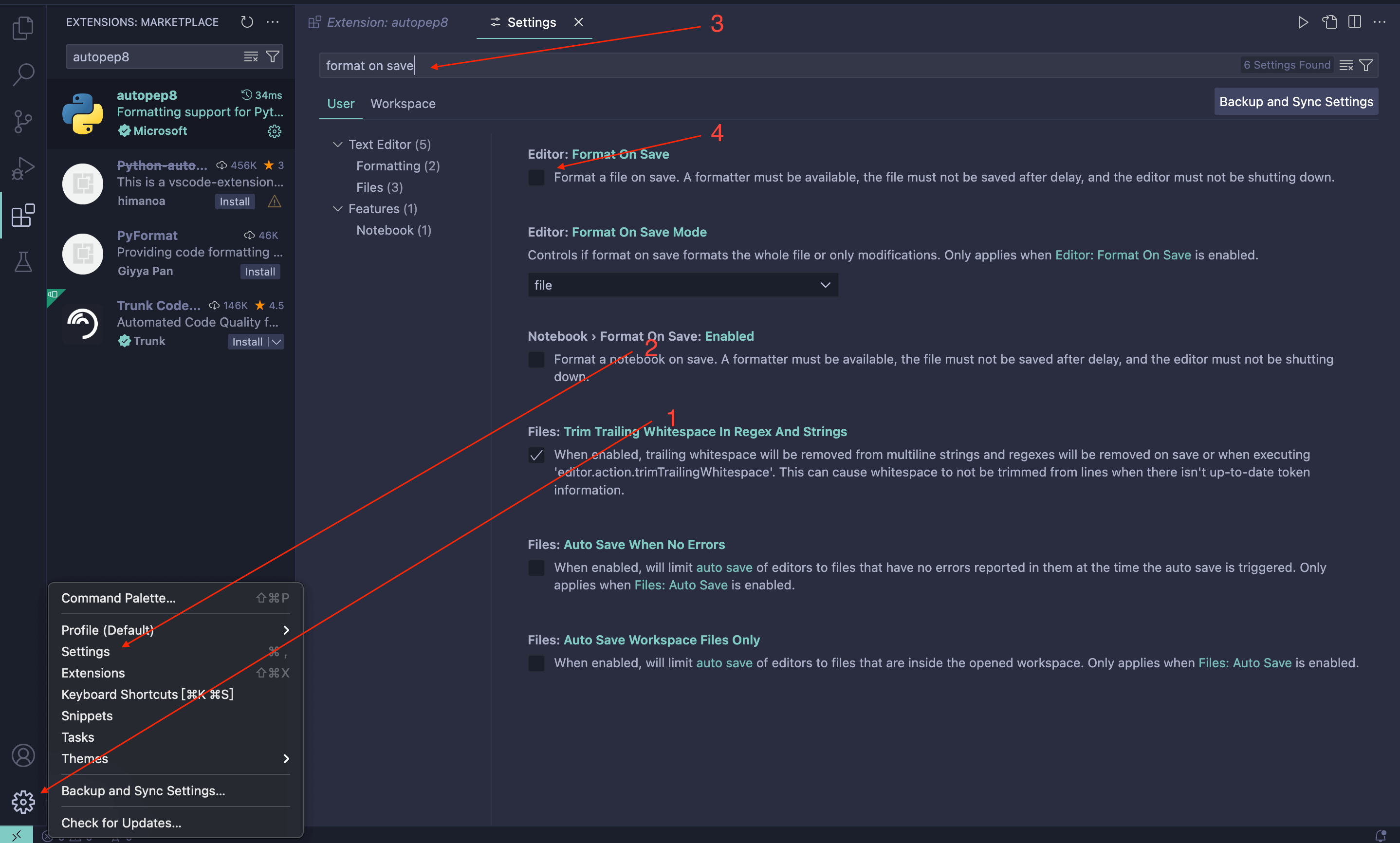 1、打开format on save